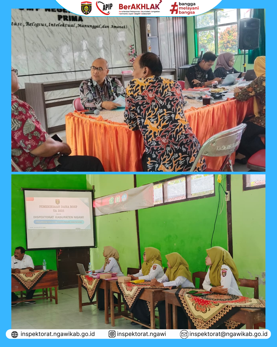 Tim Pemeriksa Inspektorat Kabupaten Ngawi melakukan penelaahan atas dokumen penggunaan dana, bukti belanja, hingga kesesuaian mekanisme pengelolaan dana BOSP dengan juknis BOSP yaitu berdasarkan Peraturan Menteri Pendidikan Dasar Dan Menengah Republik Indonesia Nomor 8 Tahun 2025. Pemeriksaan juga menitikberatkan pada kepatuhan terhadap prinsip transparansi, akuntabilitas, serta efektivitas pemanfaatan dana BOS untuk mendukung kegiatan belajar mengajar.